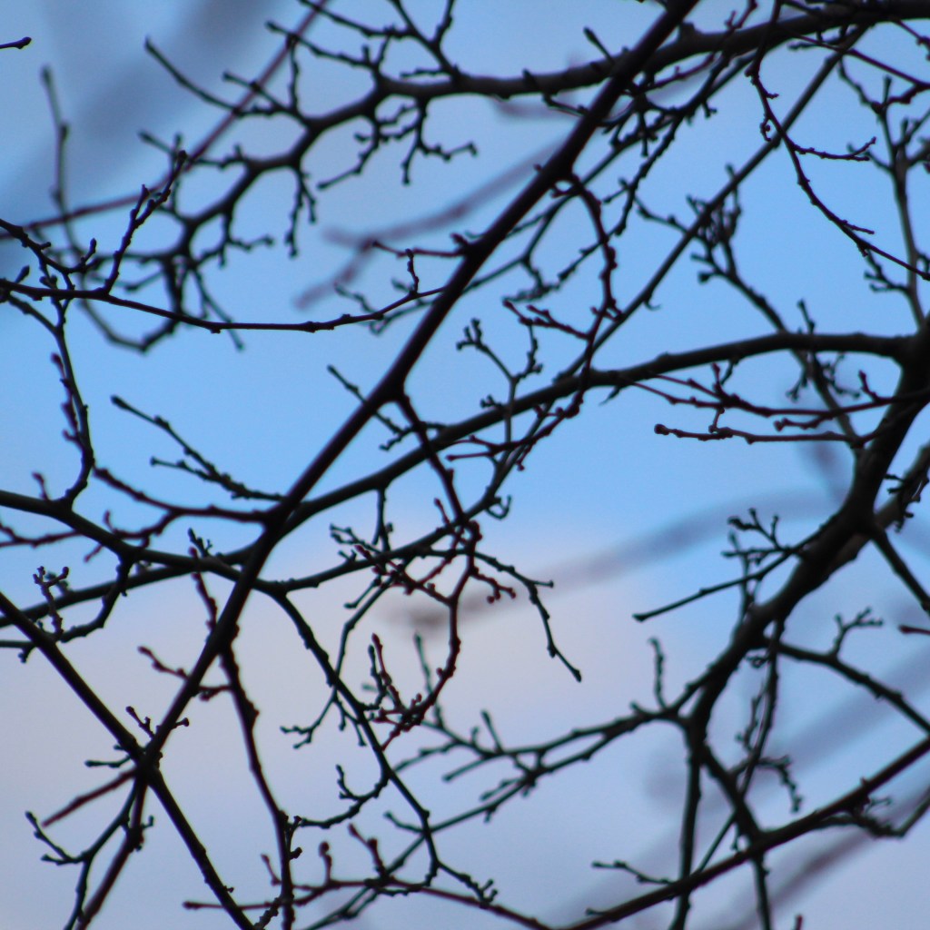 Behind these bare branches there is a story. The soft glow of blue can be seen amongst the clouds today. These clouds that have been pouring down rain day after day after day. Rain that is so needed in this land of drought. This is the first time that I have seen blue sky since Christmas, but I am not complaining. I hoped for this rain, and now it is here.
